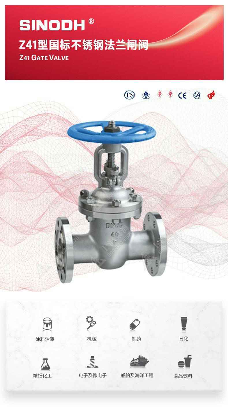 Z41型不锈钢闸阀,为乐鱼app登录入口-乐鱼(中国)自主研发生产。本产品是一种最常见的启闭阀,利用闸板的上下工作来接通(全开)和截断(全关)管道中的流体介质。此类闸阀广泛用于自来水、污水、建筑、石油、化工、食品、医药、轻纺、电力、船舶、冶金、能源系统等体管线上作为调节和截流装置使用。